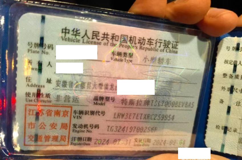 初次登记日期 2024-07-31 车辆名称 特斯拉 Model