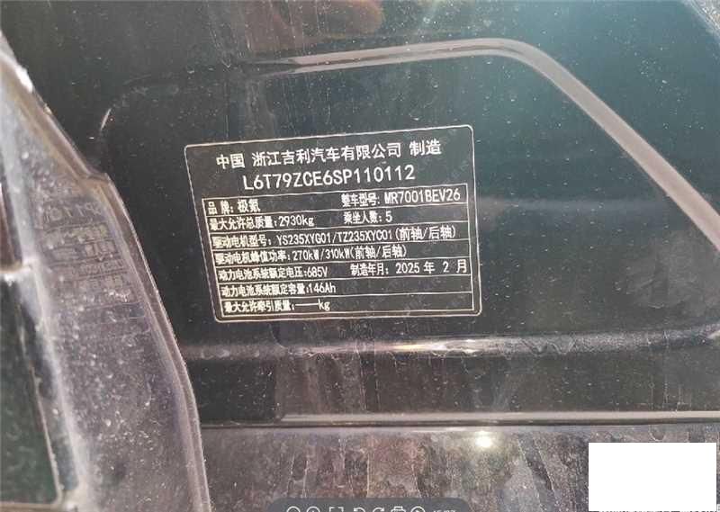 初次登记日期 2025-03-24 车辆名称 极氪牌