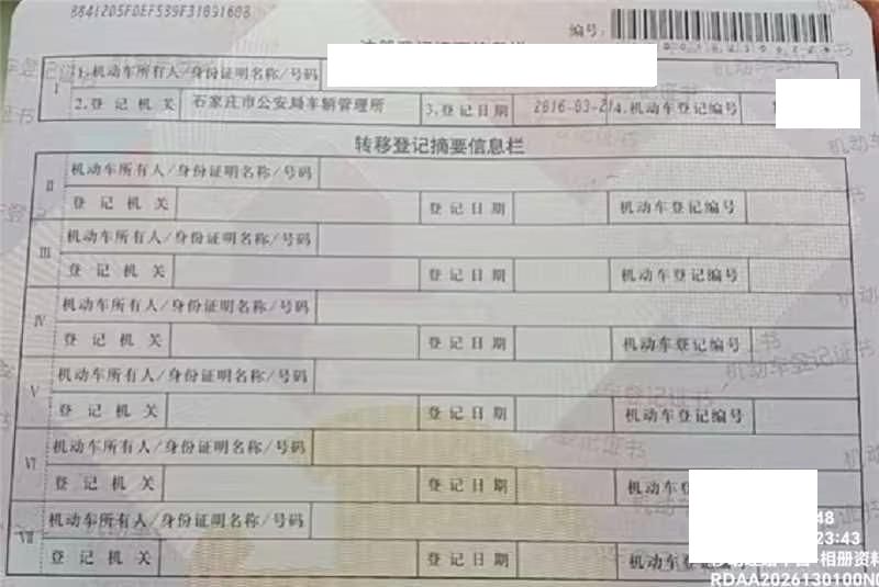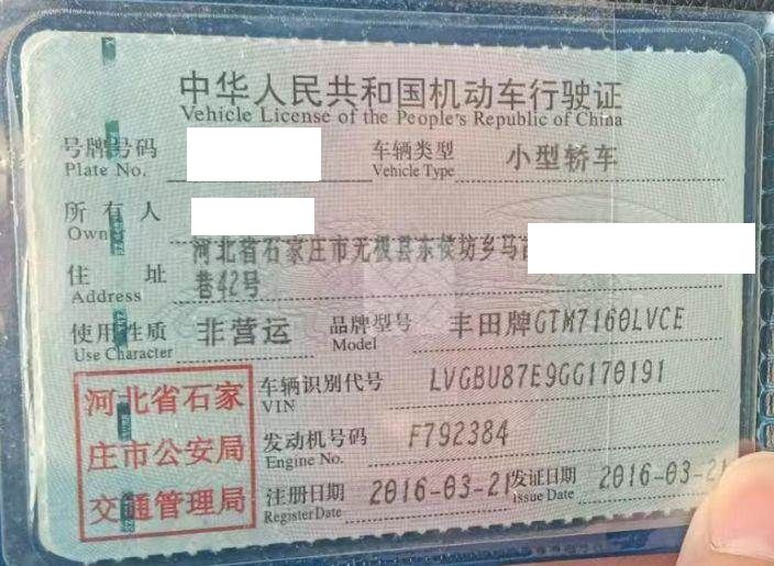 车辆归属地 河北省石家庄 车辆停放仓库 河北省石家庄市石家庄市