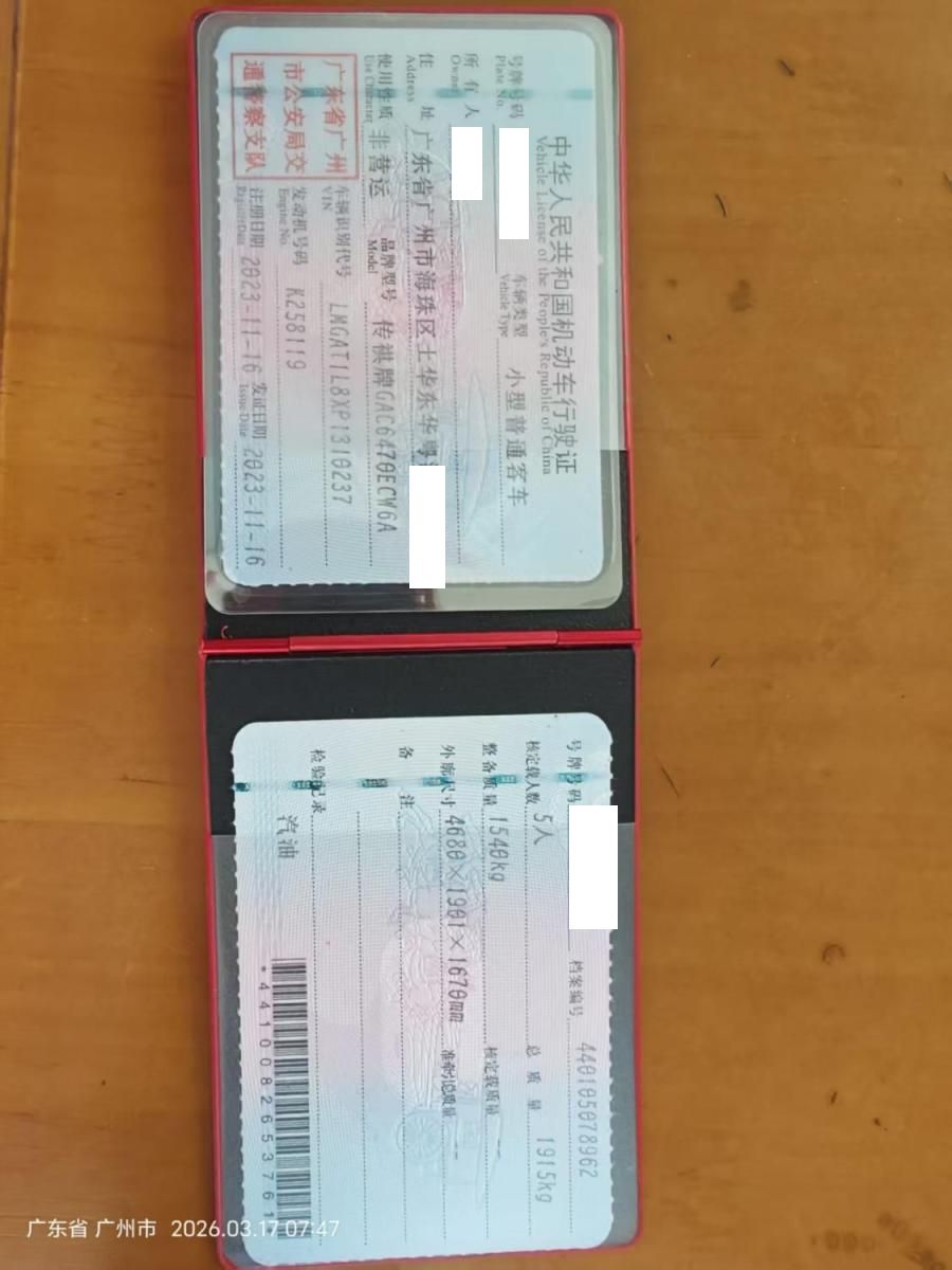 车牌号 粤****** 品牌 广汽