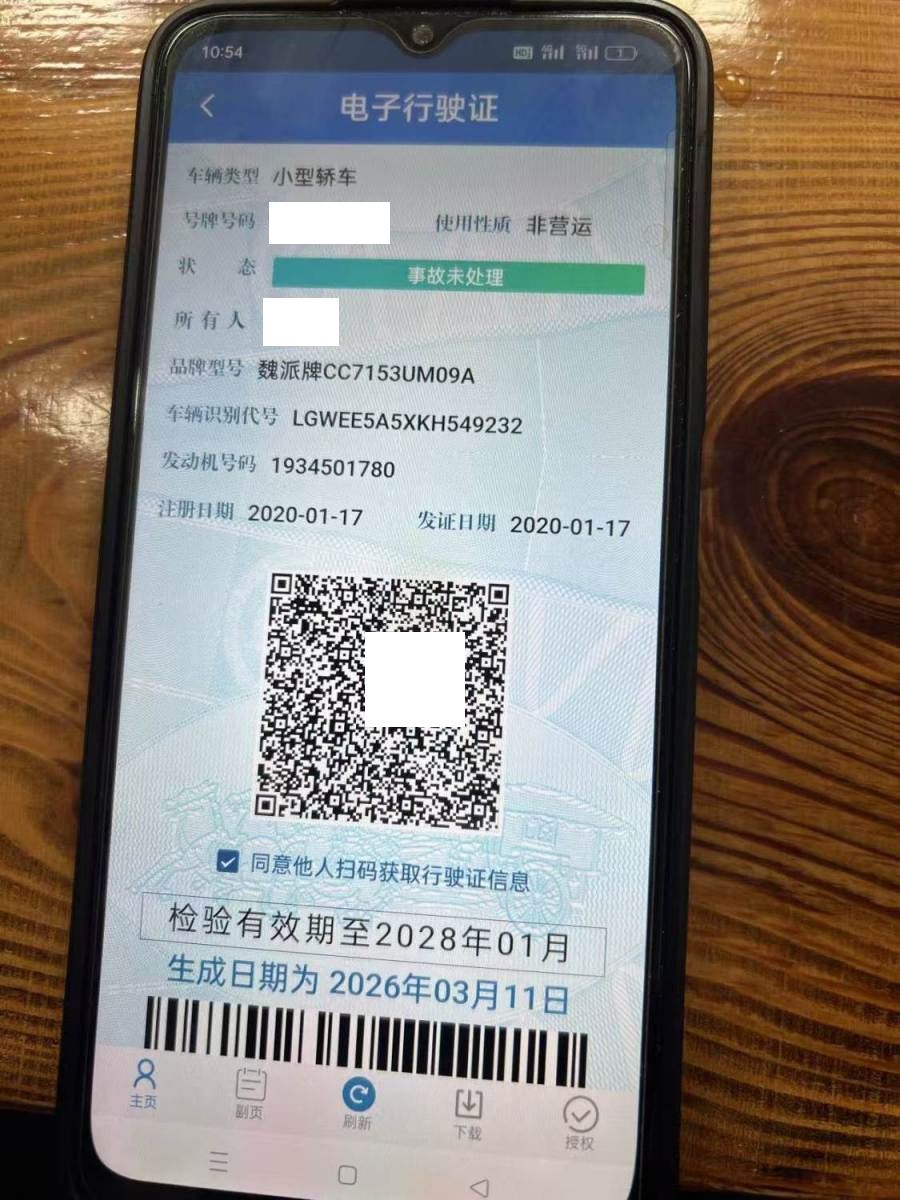 初次登记日期 2020-01-17 车辆名称 魏牌 VV5