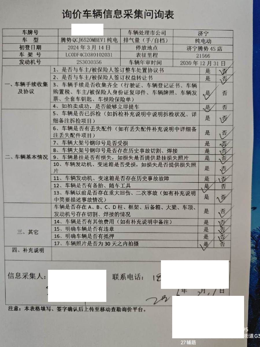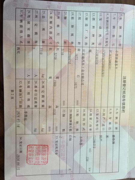 车架号是否受损 未知 使用性质 非营运