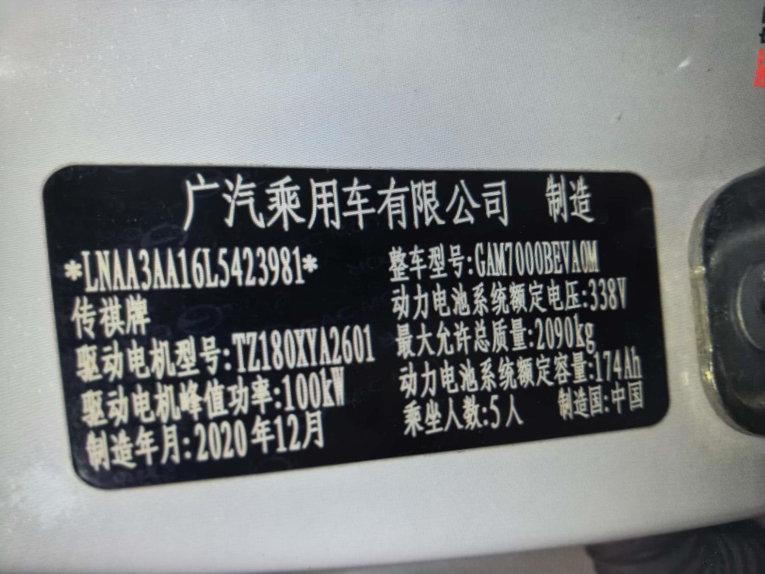 初次登记日期 2021-01-12 车辆名称 埃安 AION