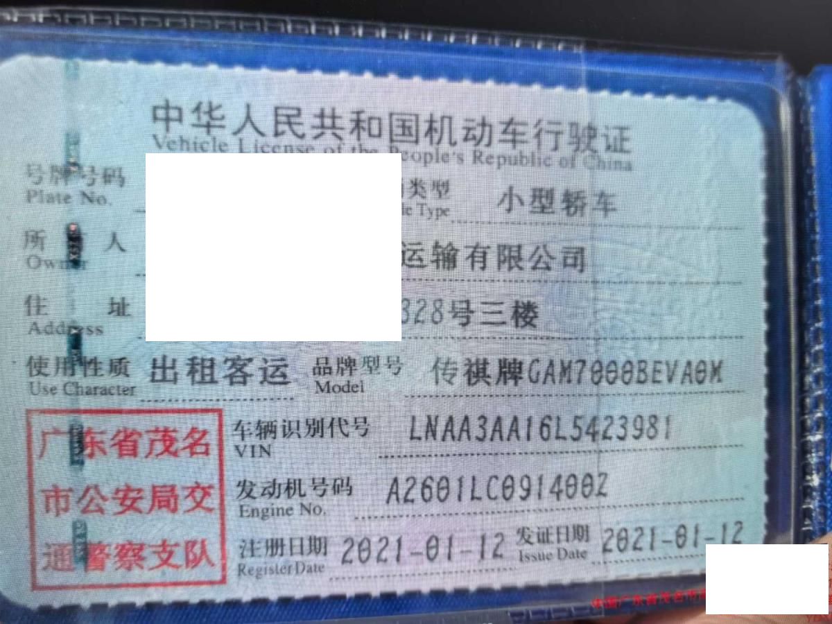 车牌号 粤****** 品牌 广汽
