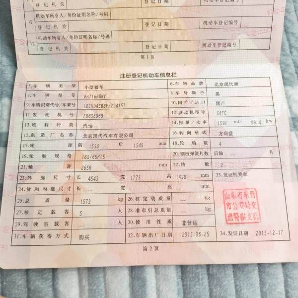 初次登记日期 2015-12-17 车辆名称 现代 悦动