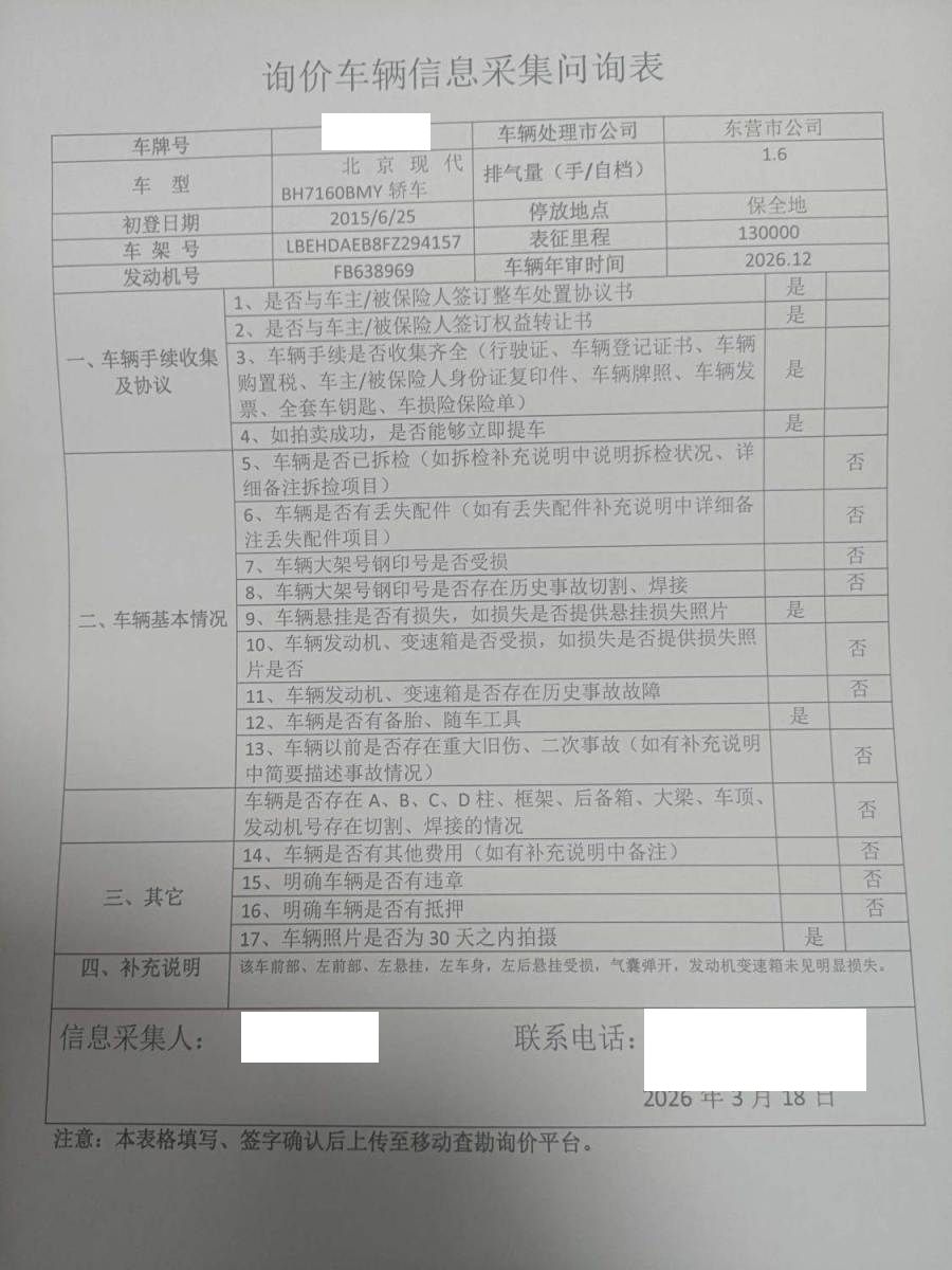 暗标碰撞车报废车