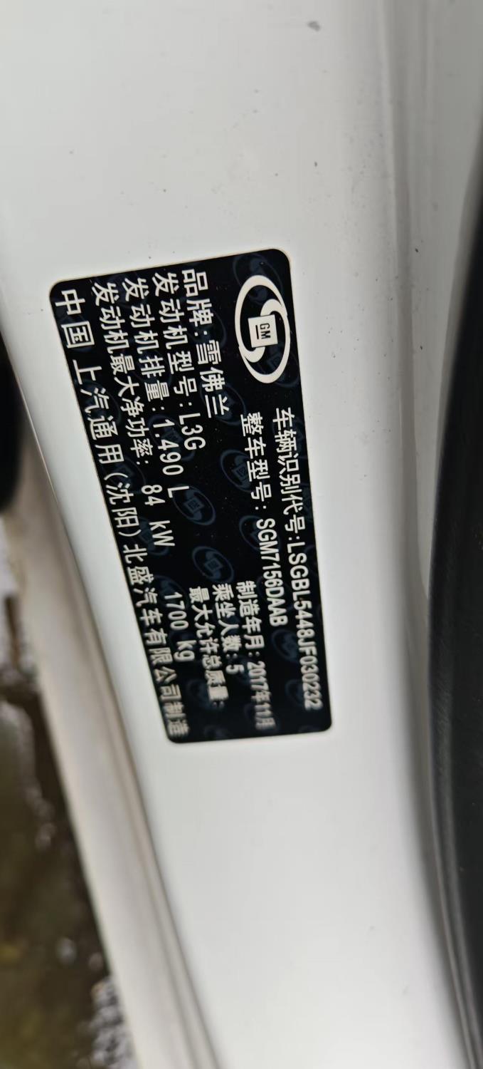 初次登记日期 2017-12-18 车辆名称 雪佛兰 科鲁兹
