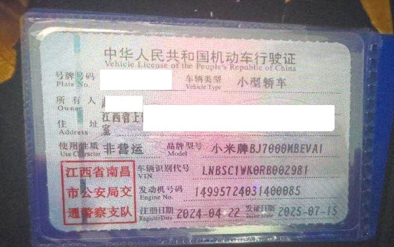 车牌号 赣****** 品牌 小米
