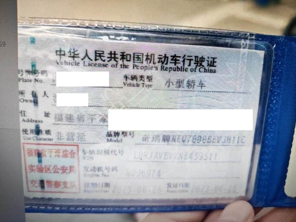 车牌号 闽****** 品牌 奇瑞