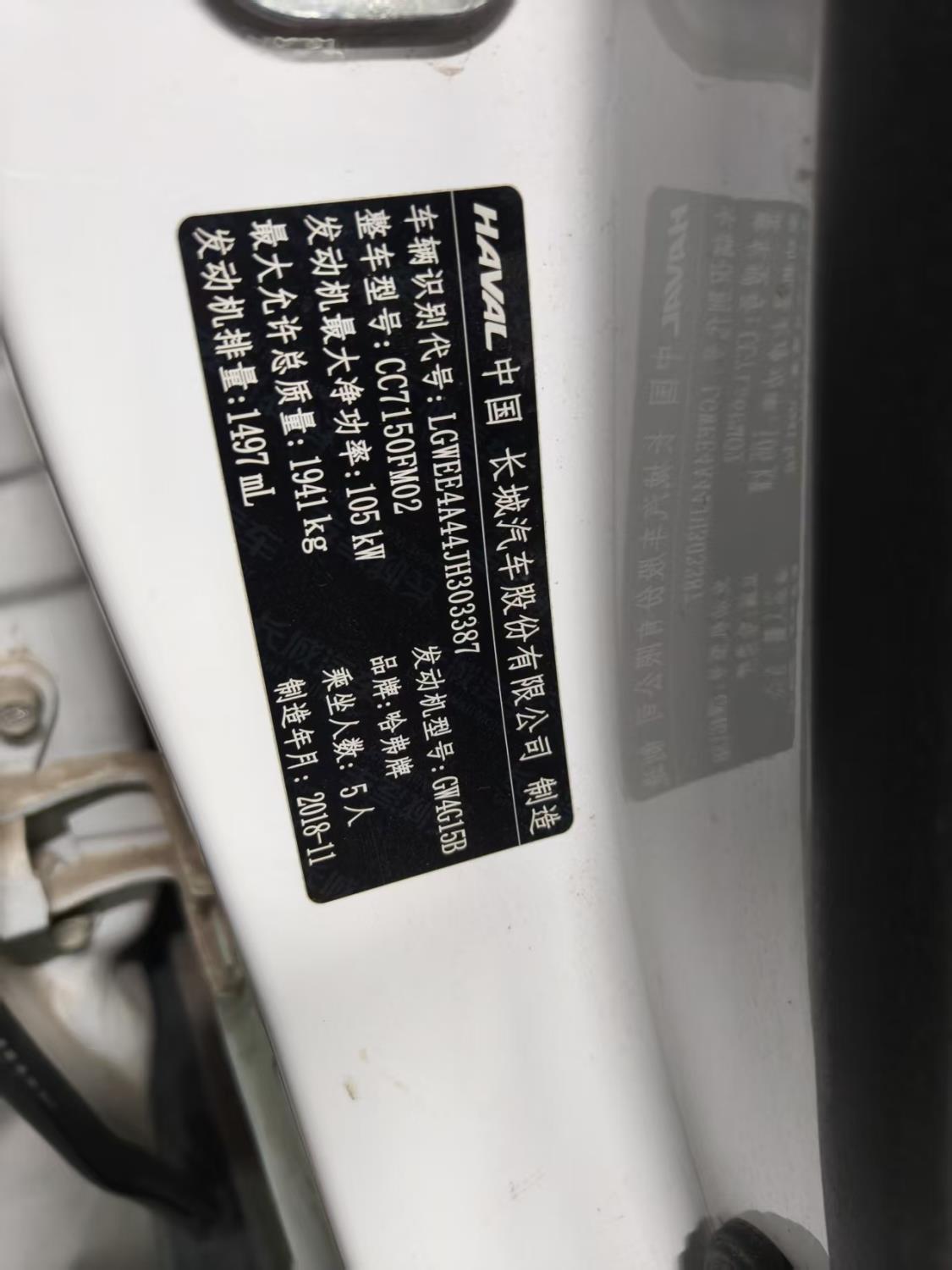 初次登记日期 2019-01-08 车辆名称 哈弗牌