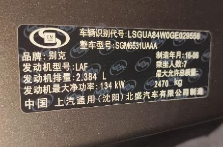 初次登记日期 2016-09-08 车辆名称 别克GL8