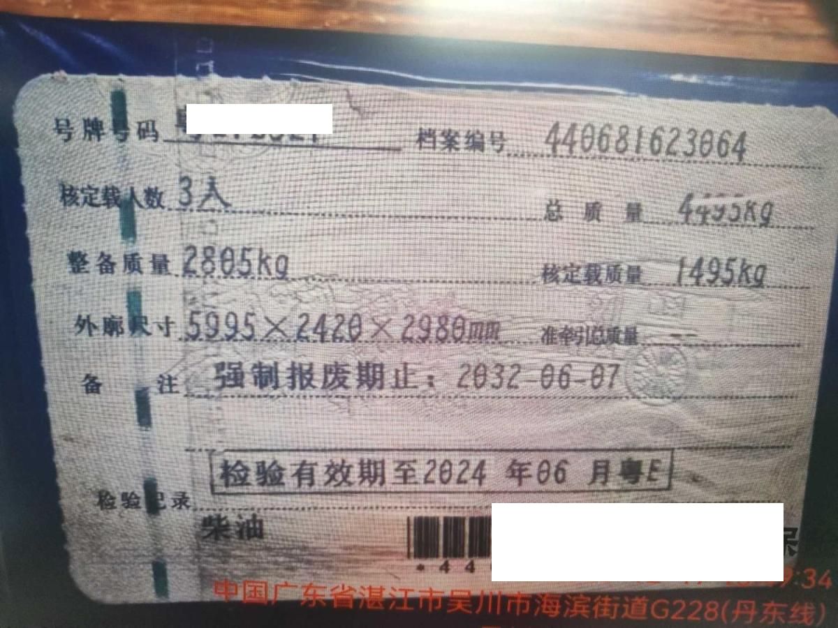 车辆归属地 广东省佛山市 车辆停放仓库 广东省吴川市吴川市