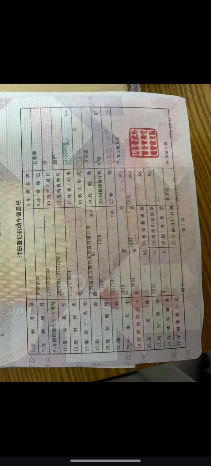 初次登记日期 2025-04-15 车辆名称 五菱汽车