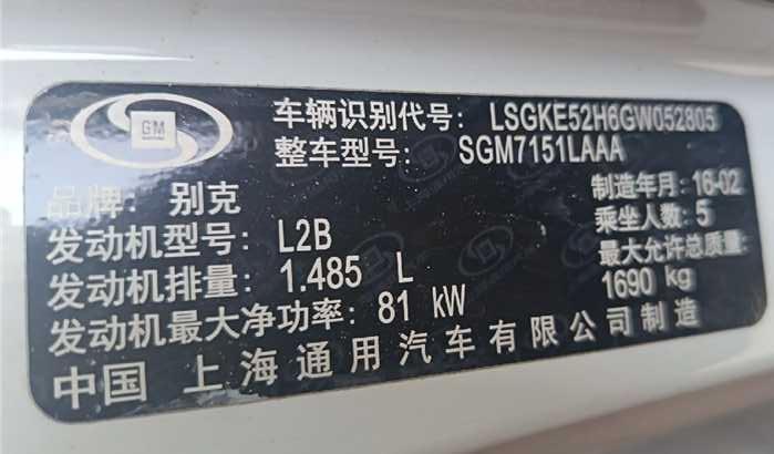 初次登记日期 2016-03-18 车辆名称 别克 英朗