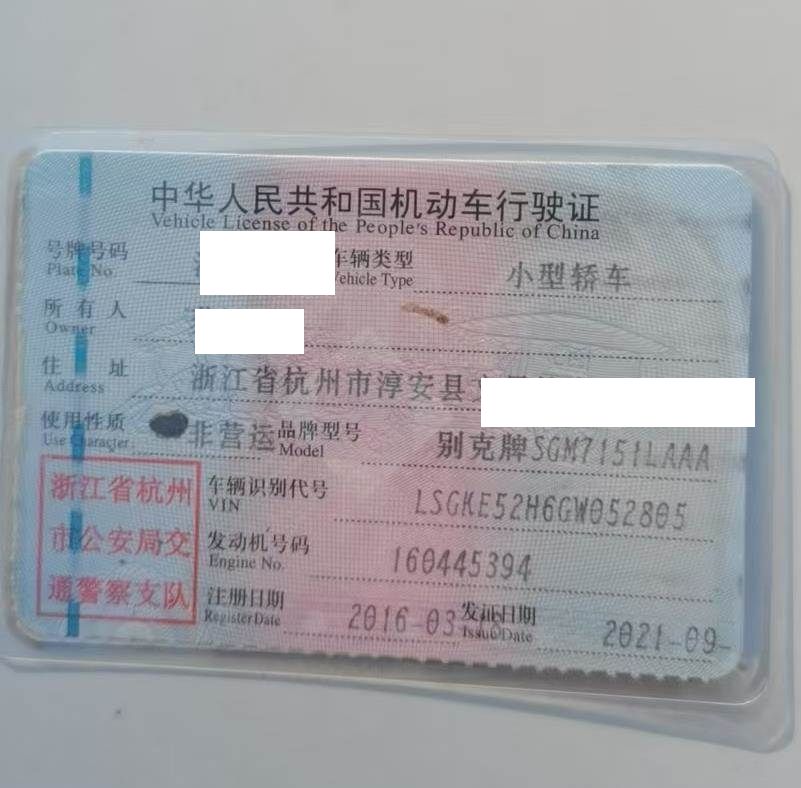 车牌号 浙****** 品牌 别克