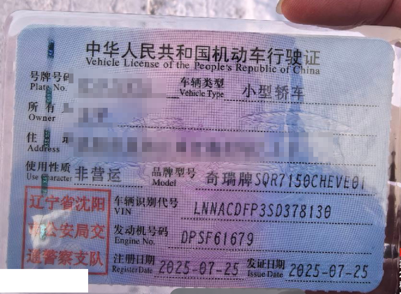 初次登记日期 2025-07-25 车辆名称 奇瑞风云