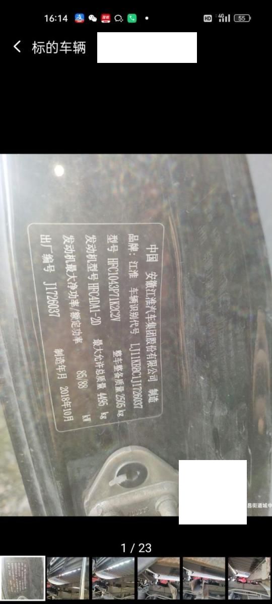 初次登记日期 2019-04-24 车辆名称 江淮 帅铃