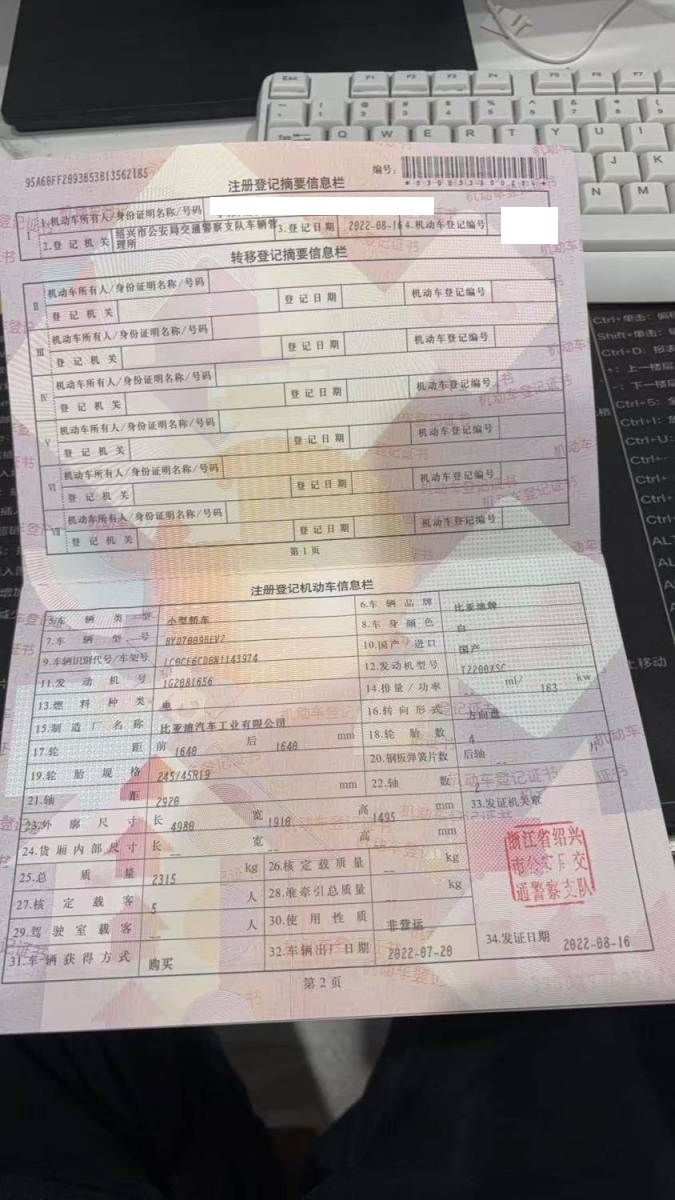 初次登记日期 2022-08-16 车辆名称 比亚迪 汉