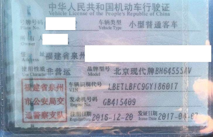 车辆归属地 福建省泉州市 车辆停放仓库 福建省泉州市泉州市