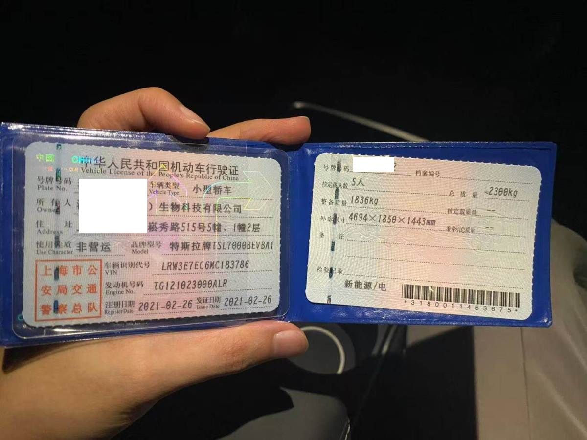 车牌号 沪****** 品牌 特斯拉