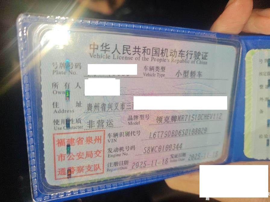 初次登记日期 2025-11-18 车辆名称 领克牌