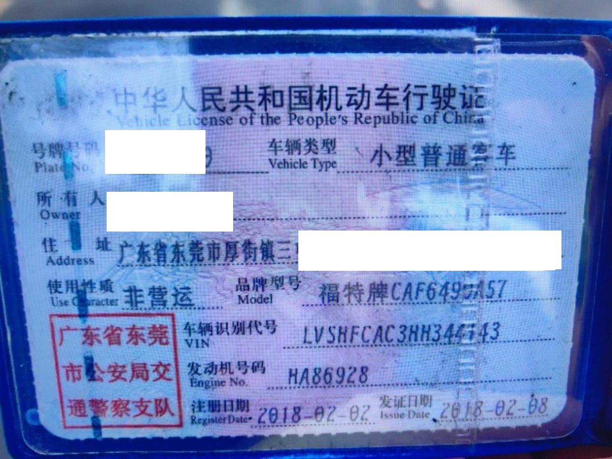 车牌号 粤****** 品牌 福特