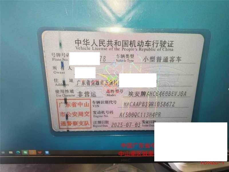 初次登记日期 2025-07-03 车辆名称 埃安 AION