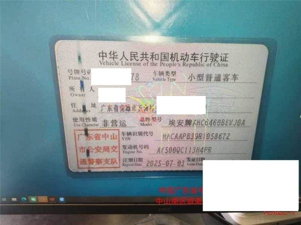 车辆归属地 广东省中山市 车辆停放仓库 广东省中山市中山市