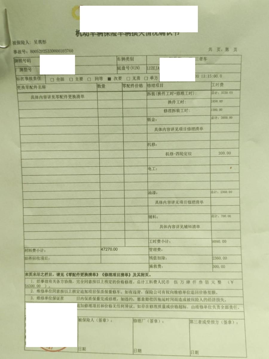 保险金额 ¥76300 预估维修金额 54300