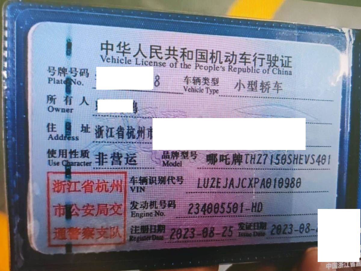初次登记日期 2023-08-25 车辆名称 哪吒汽车