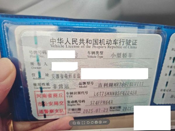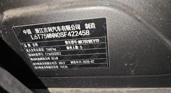初次登记日期 2025-07-23 车辆名称 吉利银河 星愿