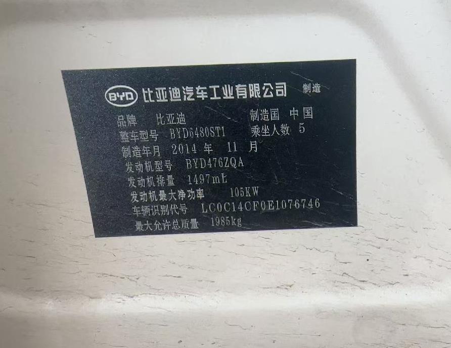 初次登记日期 2015-01-29 车辆名称 比亚迪