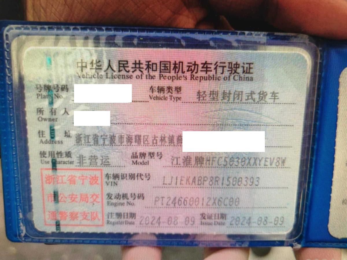 初次登记日期 2024-08-09 车辆名称 江汽集团 Van宝路