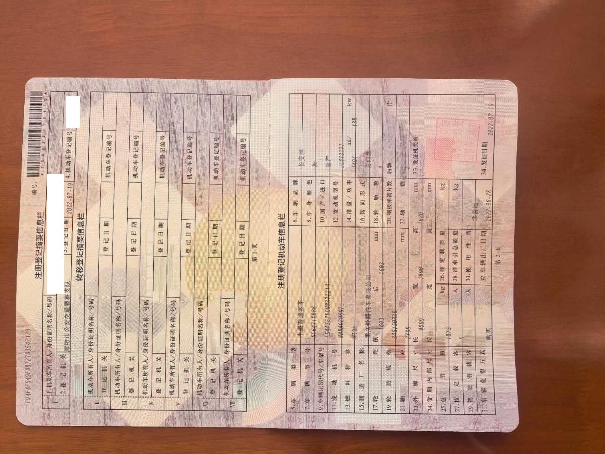 初次登记日期 2022-07-19 车辆名称 长安欧尚Z6