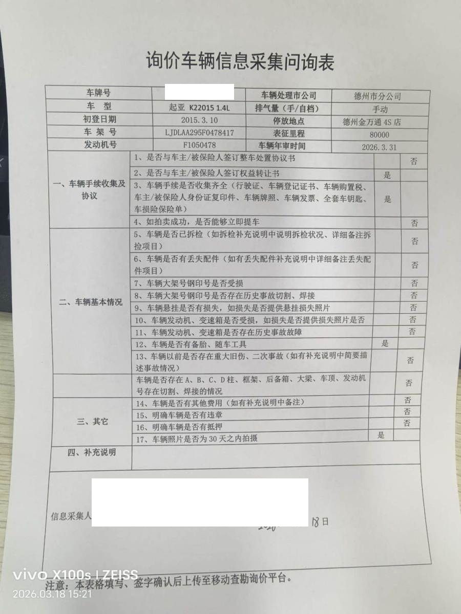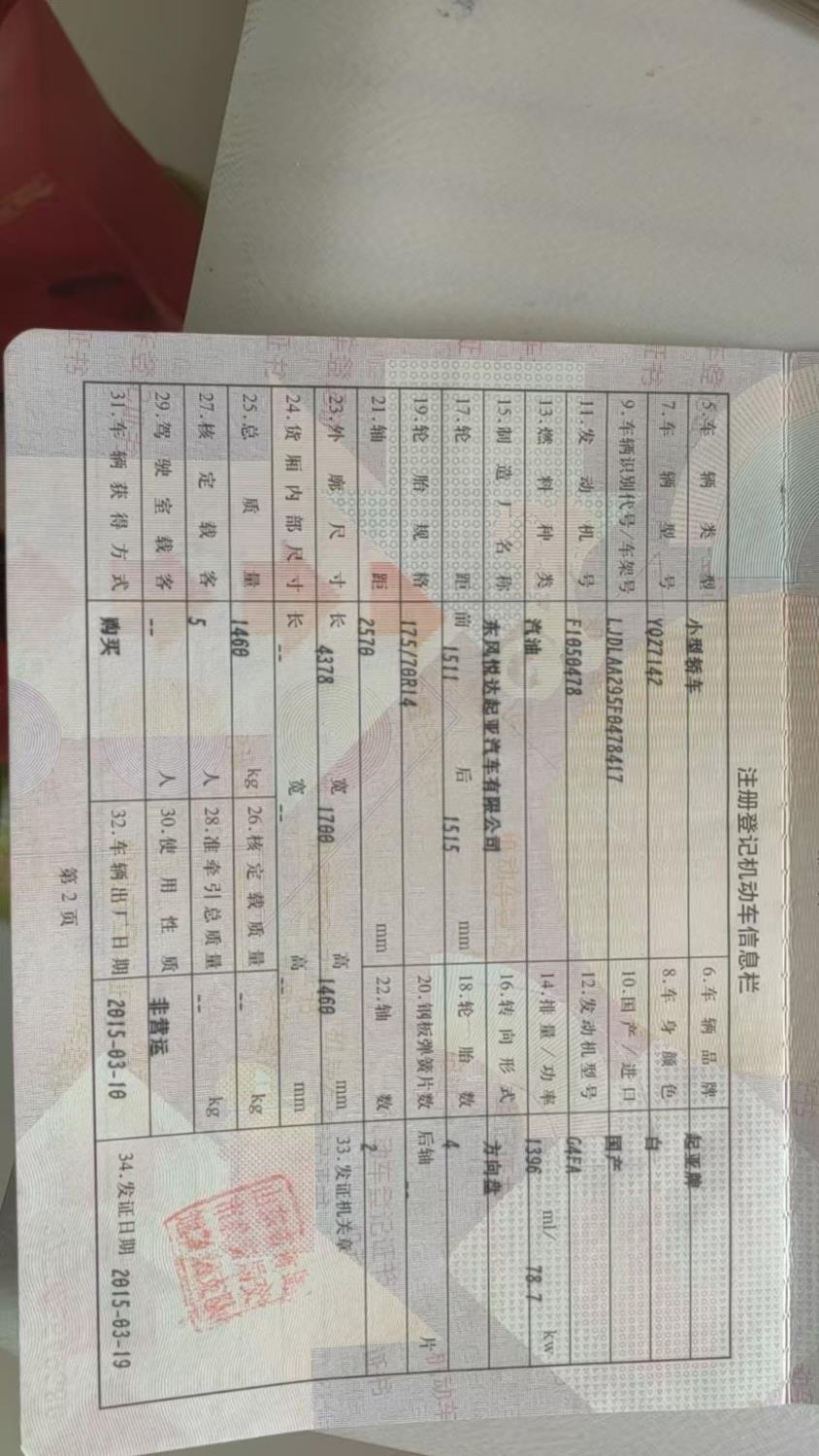 初次登记日期 2015-03-19 车辆名称 起亚K2