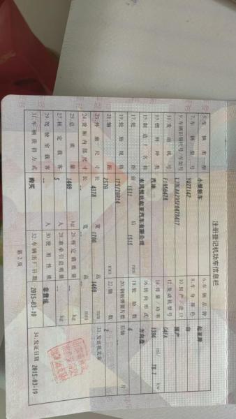 底盘号码 LJDLAA295F0478417 变速箱类型 手动