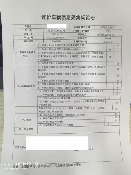 车架号是否受损 未知 使用性质 非营运
