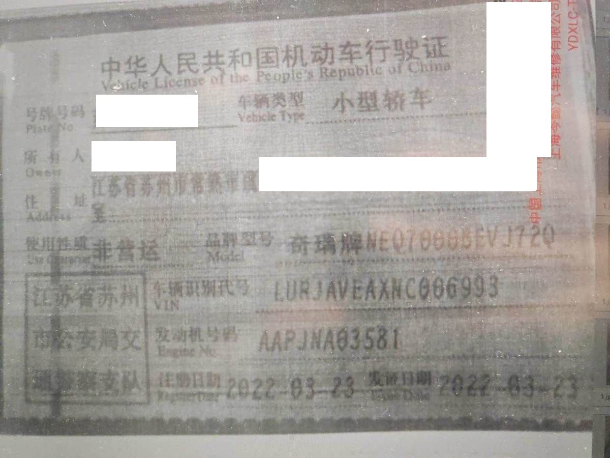 车牌号 苏****** 品牌 奇瑞
