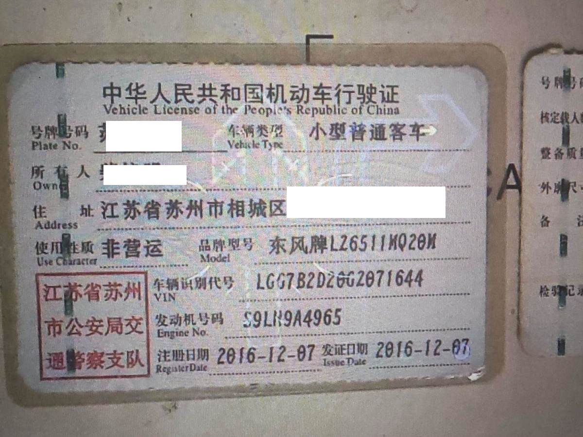 车牌号 苏****** 品牌 东风风行