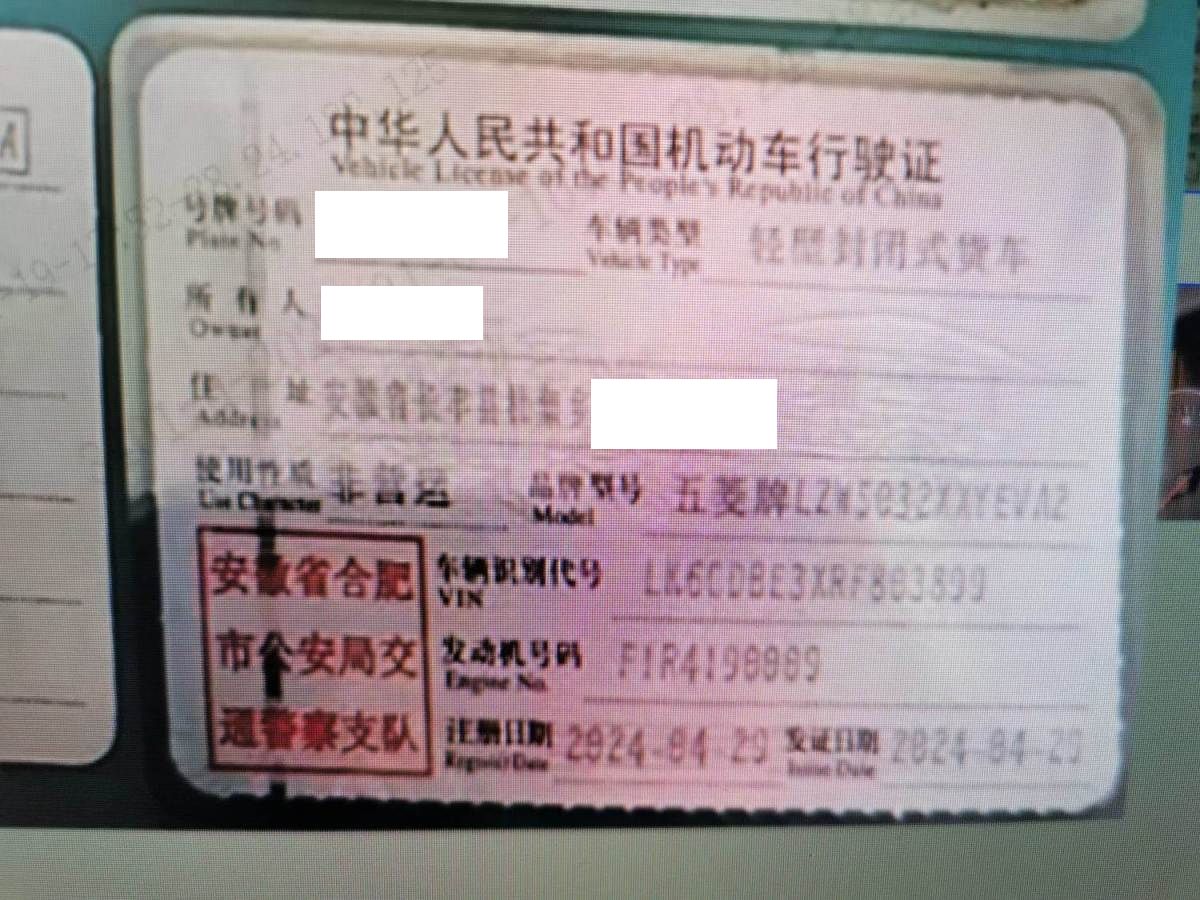 车牌号 皖****** 品牌 五菱