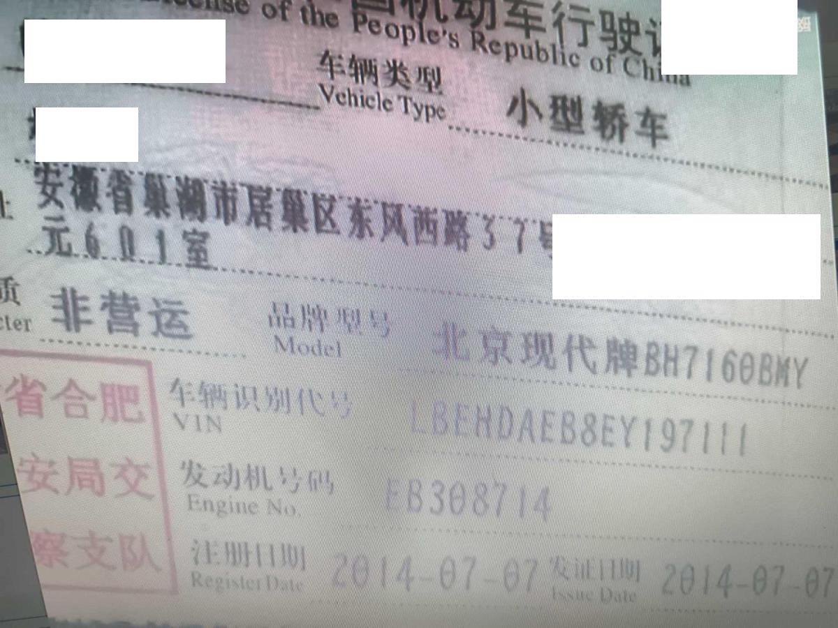 初次登记日期 2014-07-07 车辆名称 现代 悦动