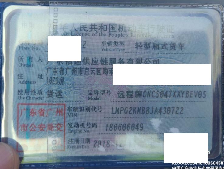 车辆归属地 广东省广州市 车辆停放仓库 广东省汕头市
