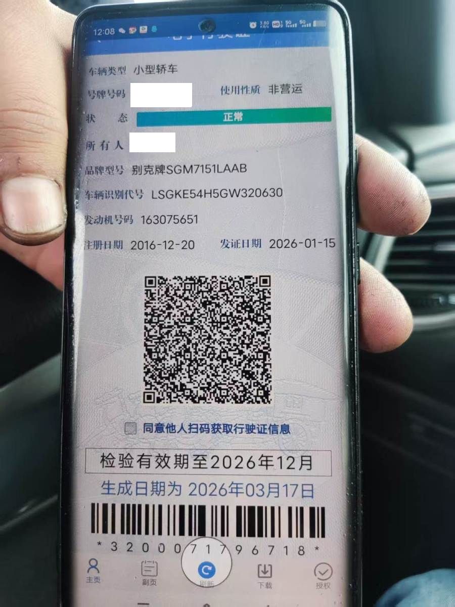 初次登记日期 2016-12-20 车辆名称 别克 英朗