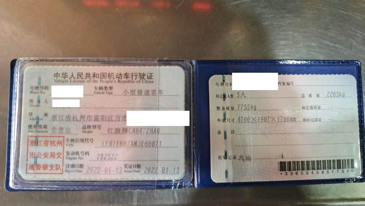 车牌号 浙****** 品牌 红旗
