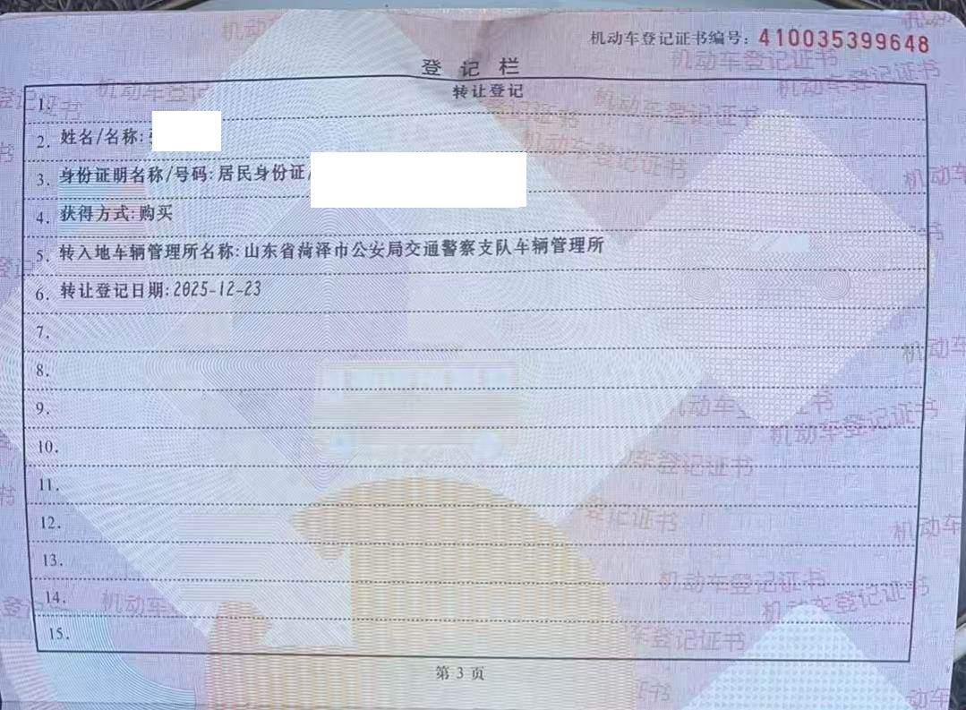 车辆归属地 山东省菏泽市 车辆停放仓库 山东省菏泽市