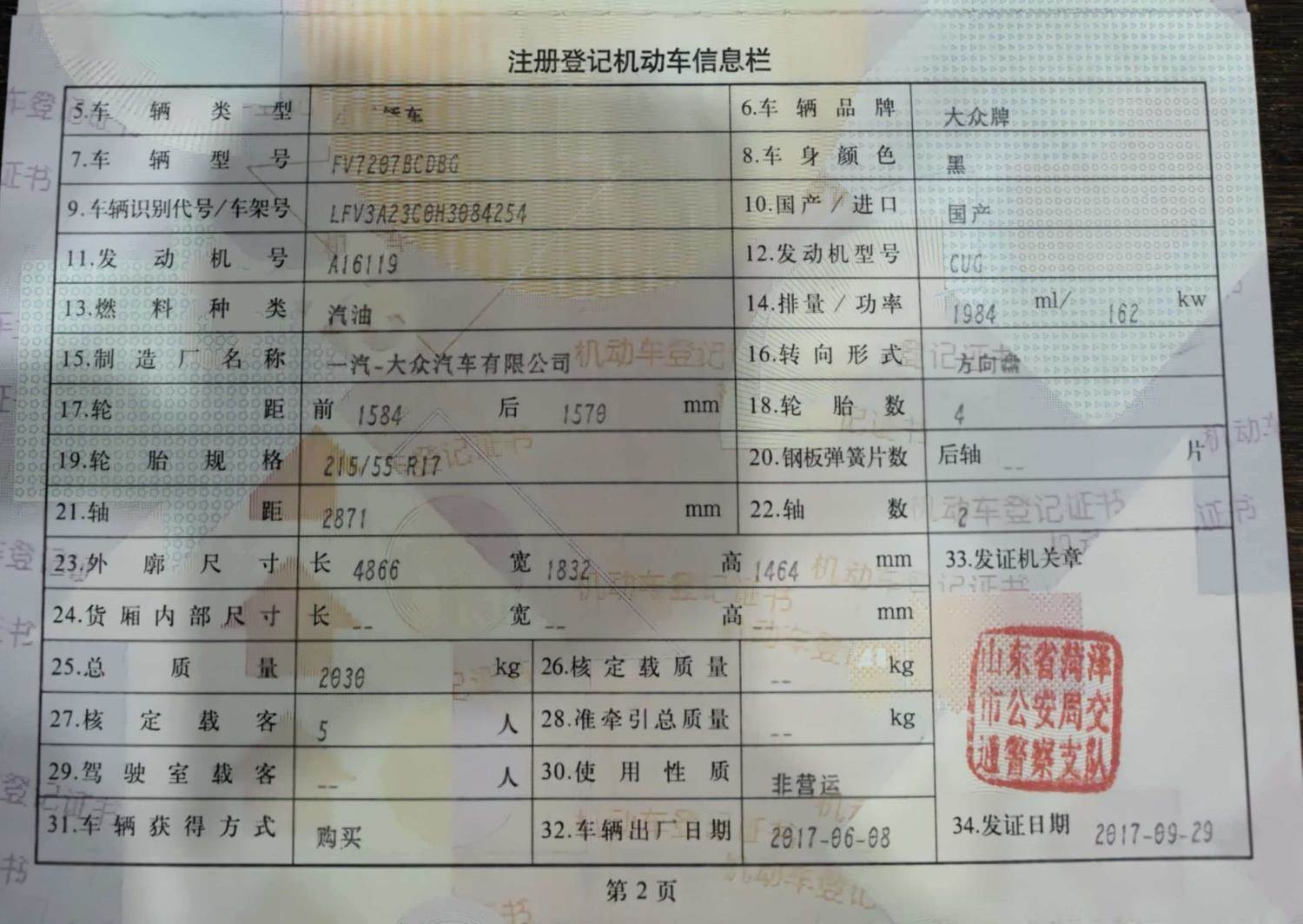 初次登记日期 2017-09-29 车辆名称 大众 迈腾