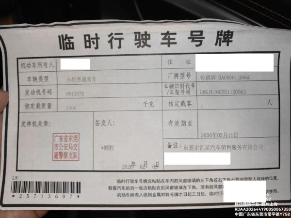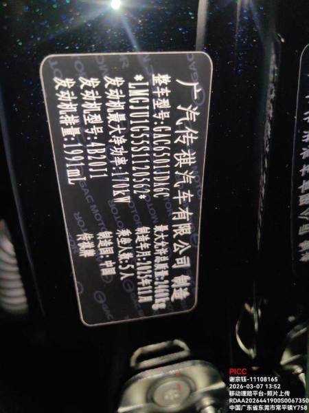 初次登记日期 2026-02-07 车辆名称 广汽传祺 传祺GS8