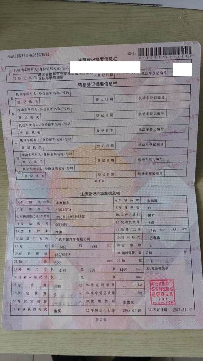 车牌号 冀****** 品牌 丰田