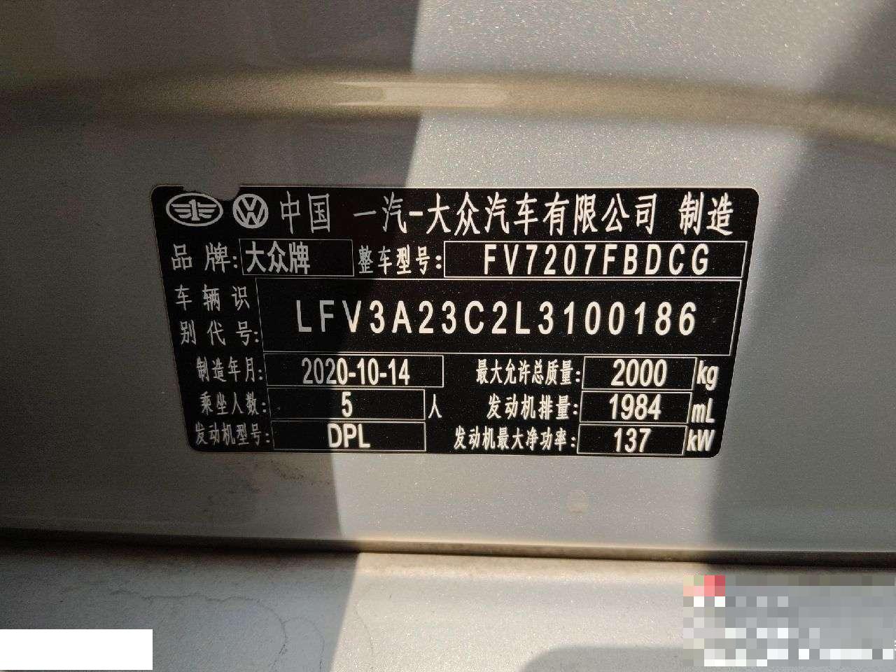 初次登记日期 2020-12-21 车辆名称 大众 迈腾