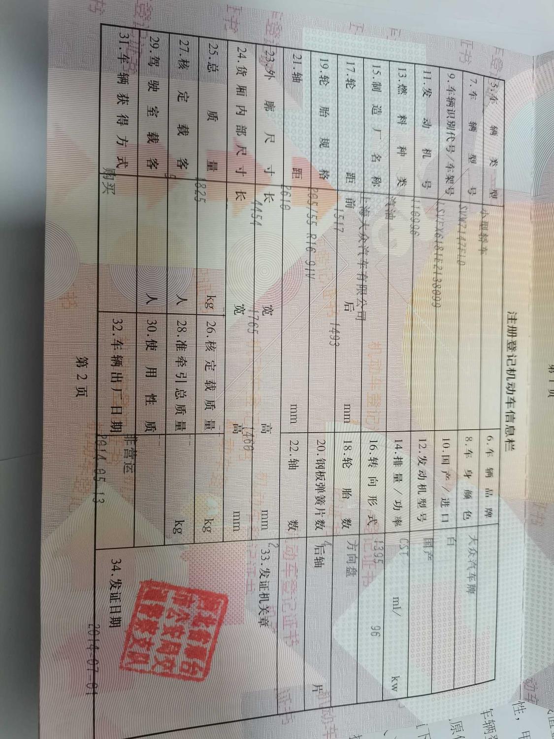 初次登记日期 2014-07-01 车辆名称 大众 朗行